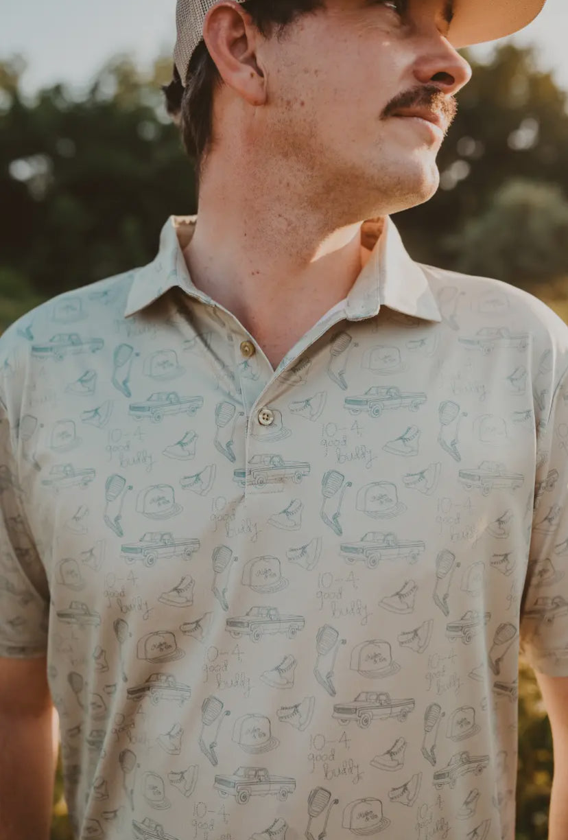 Breaker breaker, this one’s a head-turner. With retro radios, square body trucks, and good buddy vibes, it’s made for tailgate talkers and convoy kings alike.